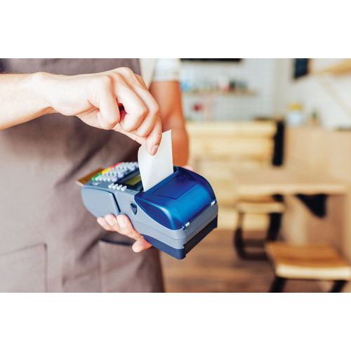 - Rotolo per ricevute di carte di pagamento con foglio di carta termica.