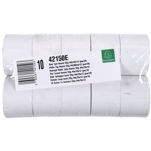 Rotolo per scontrini cassa, Tipo: Rotoli per scontrini, Grammatura: 55 g/m², Larghezza Foglio: 44 mm