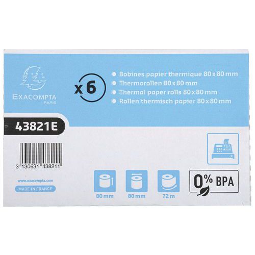 - Rotoli per scontrini 80 x 80 x 12 x 85 - 1 copia carta termica 48 g/m² senza BPA - molto lungo.