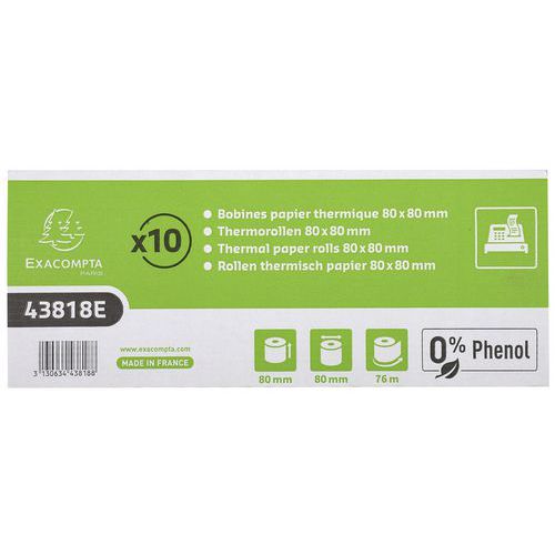 | Descrizione | Rotolo per scontrini cassa 1 copia carta termica senza FENOLO, Tipo: Rotoli per scontrini |