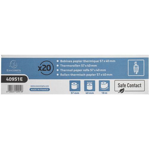 Rotolo per ricevute carta di credito in carta ad alta sensibilità che garantisce una buona stampa e una perfetta leggibilità. Viene indicato quando sta per finire il rotolo. Made in France.