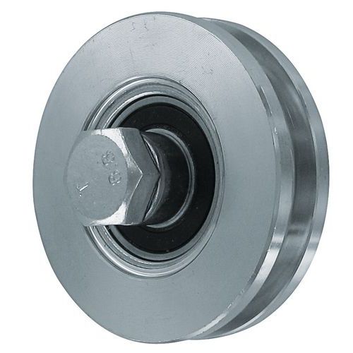 - Ruota in acciaio zincato con gola rettangolare per una guida ottimale nei binari.
