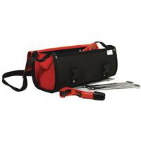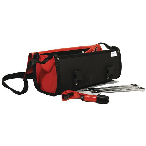 Composizione: - 1 chiusura con patta morbida e 2 fermagli - 1 scomparto grande per la sistemazione degli utensili - 1 manico centrale per il trasporto a mano - 2 manici laterali per il trasporto a mano - 1 tracolla per il trasporto a spalla.