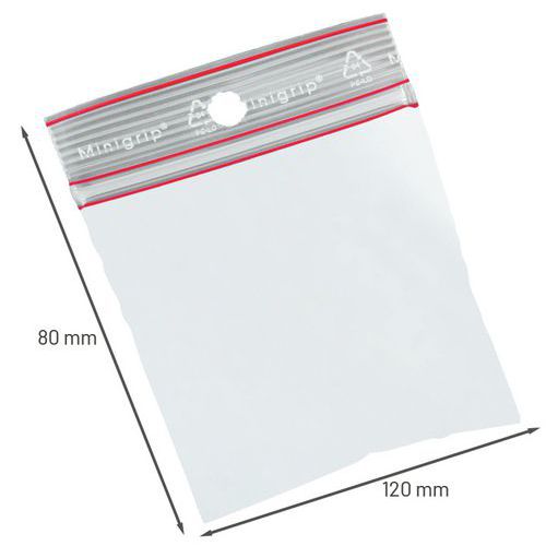 Sacchetto in plastica Minigrip, Spessore: 100 µm, Materiale: Polietilene, Altezza: 120 mm, Larghezza: 80 mm