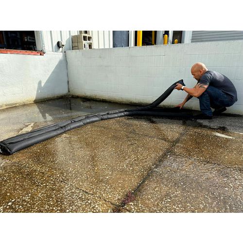 L'acqua in piena consente di riempire i sacchi Ultra-Flood Stoppers® alla massima capacità e di sigillare ermeticamente le unità tra loro.