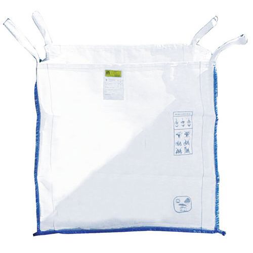 | Descrizione | Sacco per calcinacci non riutilizzabile, a fondo piatto, Capacità: 1500 L, Colore: Bianco |