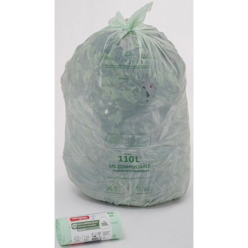 | Descrizione | Sacco compostabile per rifiuti organici 110 L, Capacità: 110 L, Spessore: 32 µm, Altezza: 1100 mm |