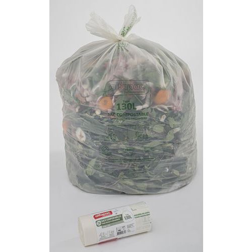 | Descrizione | Sacco per rifiuti compostabile, Capacità: 130 L, Spessore: 32 µm, Altezza: 1150 mm |