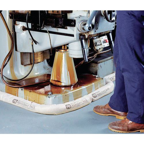 Assorbenti che si possono piegare per essere messi negli angoli e alla base delle macchine per assorbire perdite. Assorbe i liquidi industriali più comuni (acqua, olii, solventi, liquidi di raffreddamento,...). Grande capacità di assorbimento anche quando è saturo. Rivestimento in polipropilene per la massima resistenza agli strappi. Salsicciotto di colore grigio per nascondere le macchie. Per la manutenzione quotidiana
