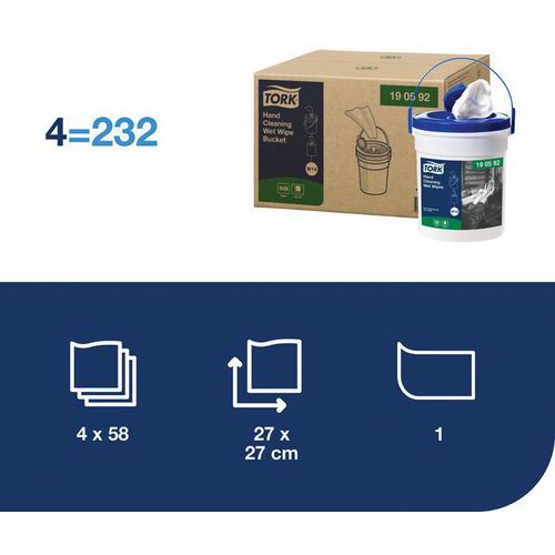 | Descrizione | Salviettine per la pulizia delle mani Tork, Tipo di prodotto per il lavaggio: Pulire |