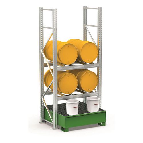 Scaffalatura completa 2 piani - con vasca di raccolta per fusti e IBC