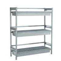 Composizione: 2 spalle, 3 coppie di correnti e 3 bacchette anticaduta. Ogni livello è costituito da una vasca di contenimento con griglia della portata di 100 L.