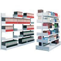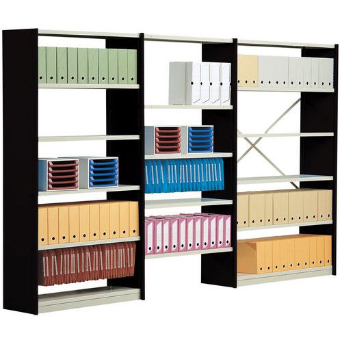 - Scaffalatura da ufficio per carichi da leggeri a medi con 300 kg per ripiano e 1200 kg per traversa.