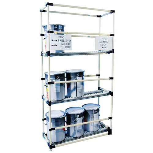 Scaffalatura FIFO con modulo a rulli, Altezza: 1450 mm, Larghezza: 1410 mm, Profondità: 420 mm, N. di piani: 2