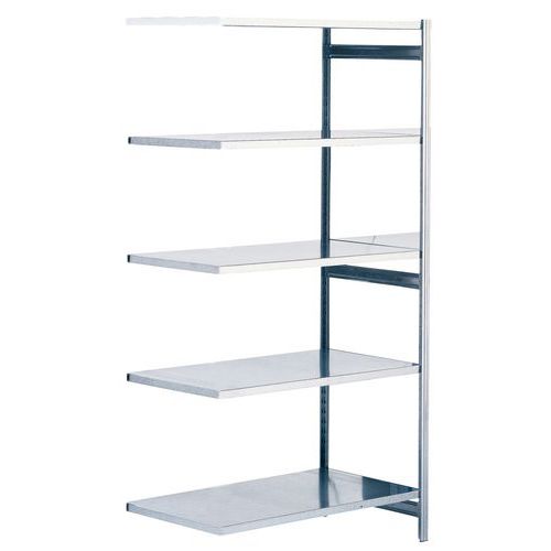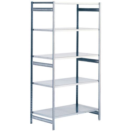 Scaffalatura industriale leggera con finitura zincata, robusta. Struttura aerata con spalle aperte sui lati. In acciaio inossidabile, ideale per ambienti umidi. Facile estensione con l'aggiunta di 1 o più elementi successivi. Finitura galvanizzata ideale per ambienti umidi ed esterni.