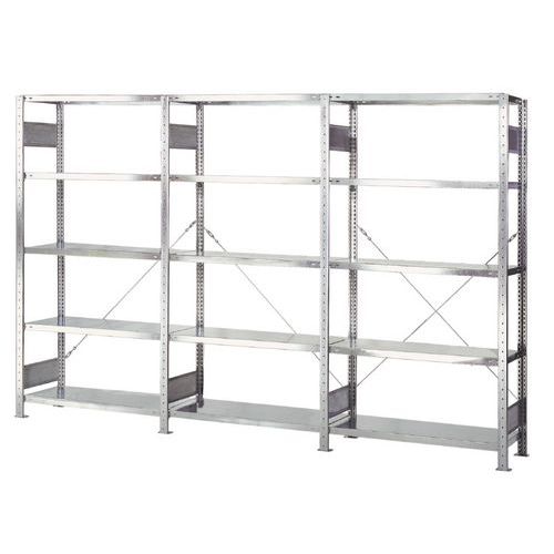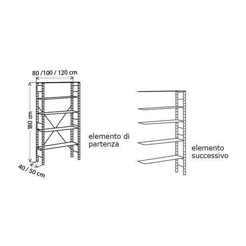 - Ripiani scatolati a “C” con doppia piega schiacciata antitaglio,spessore lamiera 0,8 mm con omega di rinforzo.