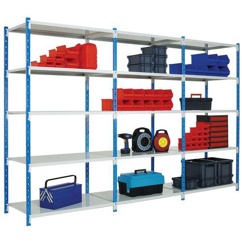- Scaffalatura solida con ripiani in lamiera piena per oggetti sfusi.
