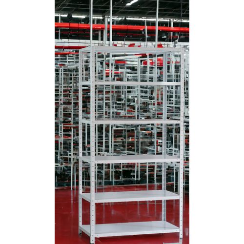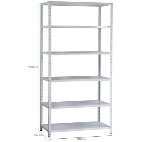 - Scaffalatura metallica da avvitare con 6 ripiani regolabili in altezza.