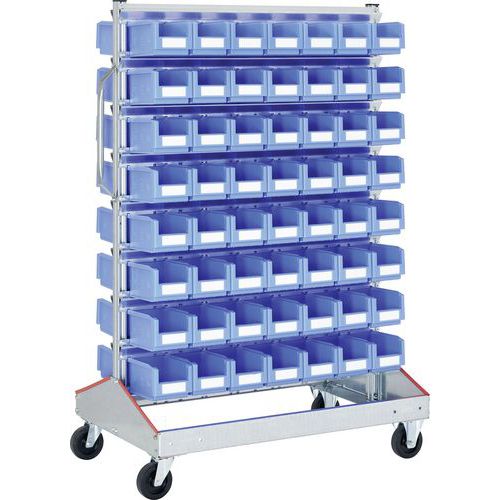 Scaffalatura mobile bifronte con contenitori a becco per mettere in ordine tutti i vostri oggetti. I ripiani mobili offrono una maggiore flessibilità per le vostre operazioni. I lati dritti della scaffalatura consentono un utilizzo ottimale del volume.