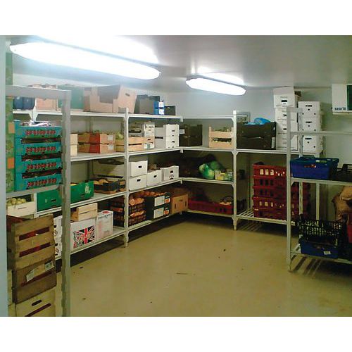 Scaffalatura conforme ai requisiti di sicurezza alimentare. Struttura robusta grazie al materiale di copertura in polipropilene e all’anima interna in acciaio. Estensione mediante l'aggiunta di uno o più elementi successivi, in base alla configurazione desiderata. Igienica grazie alla facile manutenzione della struttura. Scaffalatura facile e veloce da installare, senza viti.