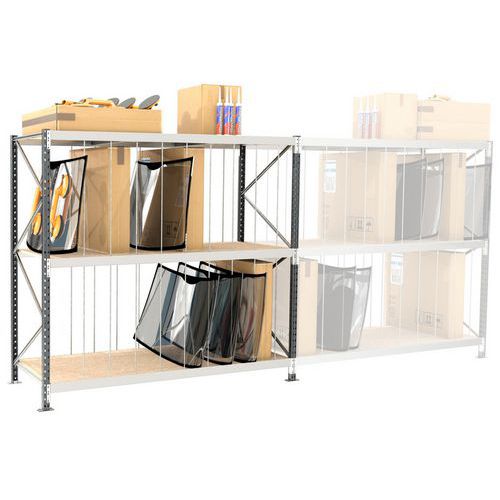Importante: l'elemento successivo non può essere installato da solo perché è dotato soltanto di 1 fianco: un elemento aggiuntivo che si aggancia alla spalla della scaffalatura che lo precede.