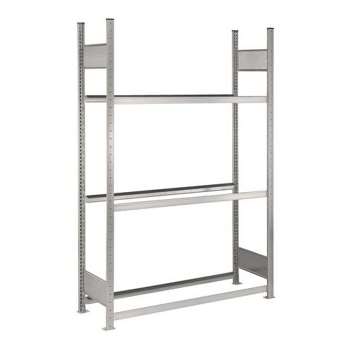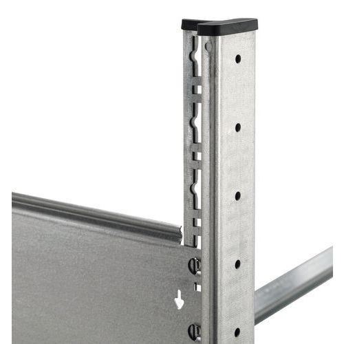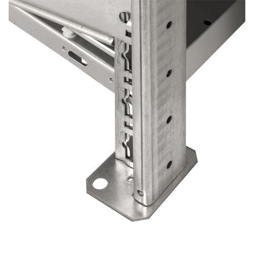 Composizione: 4 o 2 montanti (elemento di partenza 4, elemento successivo 2), 6, 8 o 10 correnti secondo l'altezza della scaffalatura, kit viti completo (salvo fissaggio al suolo), istruzioni di montaggio.
