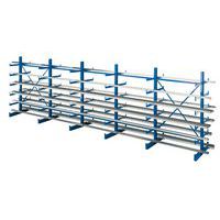 Scaffalatura cantilever monofronte e bifronte per lo stoccaggio in orizzontale. Protezione anti-scorrimento per impedire la caduta dei materiali. Estensibile con l'aggiunta di 1 o più elementi successivi. Scaffalatura cantilever a montaggio rapido grazie ai bracci saldati. Montanti dotati di 5 o 10 bracci fissi con finecorsa. Passo tra 2 montanti: 1200 mm. Passo tra 2 braccia: 1225 mm.