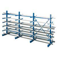 Scaffalatura cantilever monofronte e bifronte per lo stoccaggio in orizzontale. Protezione anti-scorrimento per impedire la caduta dei materiali. Estensibile con l'aggiunta di 1 o più elementi successivi. Scaffalatura cantilever a montaggio rapido grazie ai bracci saldati. Montanti dotati di 5 o 10 bracci fissi con finecorsa. Passo tra 2 montanti: 1200 mm. Passo tra 2 braccia: 1225 mm.