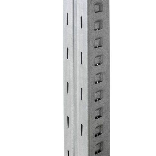 Il kit elementi di partenza è composto da 4 montanti e il kit elementi successivi da 2 montanti forati sui lati e sul lato anteriore, da ripiani in acciaio, da barre trasversali e piedi per assicurare la stabilità.