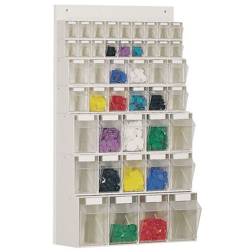 Con 4 file di contenitori inclinabili trasparenti per una visione immediata del contenuto.