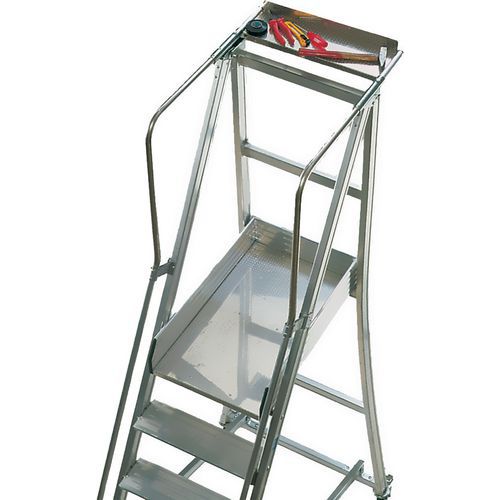 Solida ed elegante, pieghevole per il trasporto e lo stoccaggio. Cerniere in acciaio per la chiusura. Maniglie pieghevoli a scomparsa e vaschetta portaoggetti. Gradini con esclusivo sistema di fissaggio a 10 punti senza saldature.