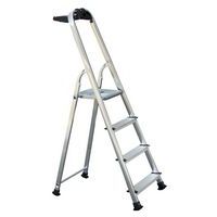 Scala in alluminio a elevata stabilità e sicurezza grazie ai parapetti. Sicurezza elevata grazie ai piedini antiscivolo, avvolgenti e antiallentamento. Resistente grazie al sistema di fissaggio dei gradini brevettato. Poggiapiedi in acciaio anticorrosione con sistema anti sollevamento. Pratico: portautensili multiuso con gancio portasecchio e alloggiamento per viti. Realizzato in Francia Carico max. (kg) : 150 kg