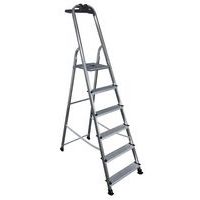 Scala in alluminio a elevata stabilità e sicurezza grazie ai parapetti. Sicurezza elevata grazie ai piedini antiscivolo, avvolgenti e antiallentamento. Resistente grazie al sistema di fissaggio dei gradini brevettato. Poggiapiedi in acciaio anticorrosione con sistema anti sollevamento. Pratico: portautensili multiuso con gancio portasecchio e alloggiamento per viti. Realizzato in Francia Carico max. (kg) : 150 kg