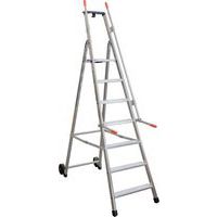 Scaletta professionale con 2 rampe di sicurezza. Impugnature pieghevoli per sollevare il pianetto. Cerniera a compasso in alluminio antichiusura e antidivaricamento. Rotelle ribaltabili, si attivano solo dopo il sollevamento del pianetto. Realizzato in Italia Carico max. (kg) : 150 Garanzia Cliente : 3 anni