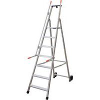 Scaletta professionale con 2 rampe di sicurezza. Impugnature pieghevoli per sollevare il pianetto. Cerniera a compasso in alluminio antichiusura e antidivaricamento. Rotelle ribaltabili, si attivano solo dopo il sollevamento del pianetto. Realizzato in Italia Garanzia Cliente : 3 anni Carico max. (kg) : 150 kg