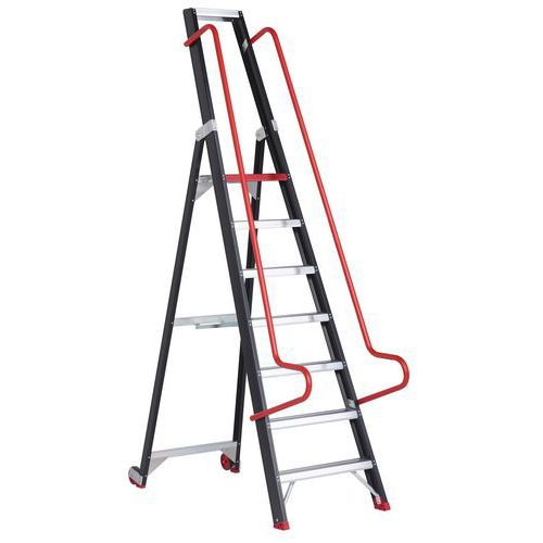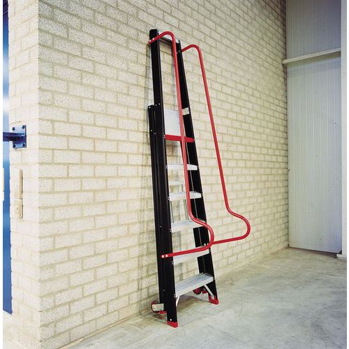 - Scaletta da magazzino facile da spostare con rotelle fisse posteriori.