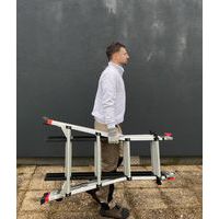 Scala 4x4 multi posizione con 2 piedi indipendenti regolabili e 2 piani regolabili anche su dislivelli. Facile da trasportare e da riporre. 2 posizioni: in posizione dritta chiusa o con doppia rampa di salita. Per un uso professionale, versatile e facile in tutte le circostanze. Piani telescopici scorrevoli.