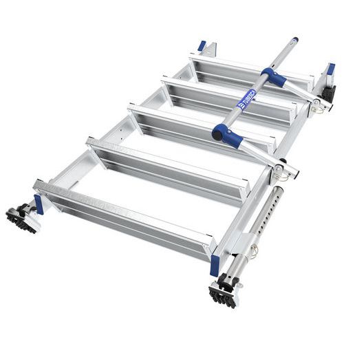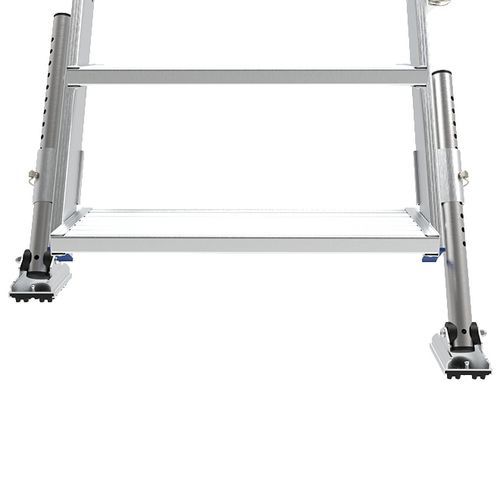 Gradini antiscivolo da 200 mm, piedi articolati regolabili a 230 mm.