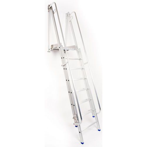 Scala per accesso con parapetto, base telescopica, scala impilabile e struttura in alluminio