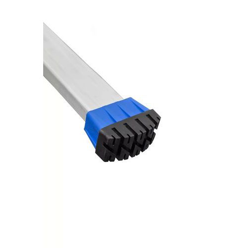 Scala semplice con gradini antiscivolo a forma leggermente arrotondata per un comfort maggiore. Piedini antiscivolo e antislittamento. Barra stabilizzatrice a partire da 12 gradini. Gradini striati fissati saldamente ai montanti tramite crimpatura.