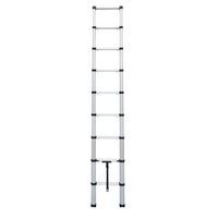 Scala telescopica in alluminio ultra compatta. Struttura sicura con indicatore di bloccaggio. Sistema a chiusura graduale. Pratica con gradini striati antiscivolo XL. Facile accesso: distanza tra gli scalini di 26 cm. Facile da riporre e trasportare grazie alla maniglia di trasporto.