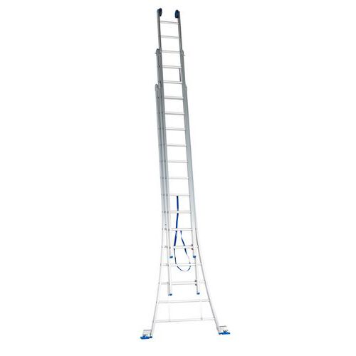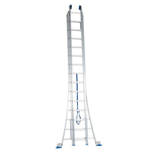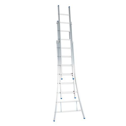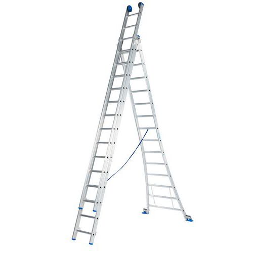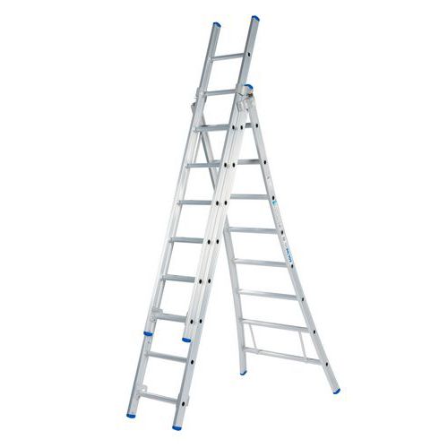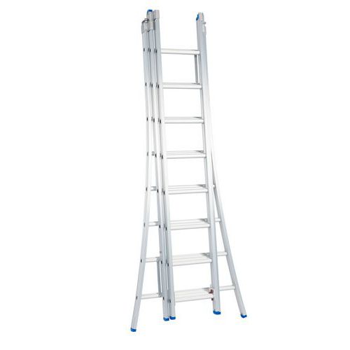 Massima versatilità: la scala a 3 rampe trasformabile di tipo Reform può essere utilizzata in posizione scorrevole, autostabile (A) o a pressione, il che la rende ideale per molteplici applicazioni professionali. Funzionamento sicuro: dotato di sistemi di bloccaggio automatico, gradini antiscivolo e pattini stabilizzatori per garantire la massima sicurezza per ogni utilizzo. Maggiore stabilità: i piedini svasati (a seconda del modello) offrono una migliore posizione a terra, anche su superfici irregolari, riducendo il rischio di ribaltamento. Mobilità e praticità: alcuni modelli sono dotati di ruote anteriori per un facile posizionamento contro una parete senza sforzo. Struttura resistente: realizzata in alluminio rivestito in poliestere, la scala a 3 rampe trasformabile combina leggerezza, robustezza ed eccellente resistenza alla corrosione, anche in condizioni esterne difficili.