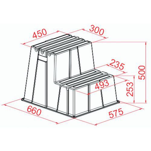 Scaletta antiscivolo, Carico max.: 230 kg, Piattaforma, H: 500 mm, N. di gradini (piattaforma inclusa): 2