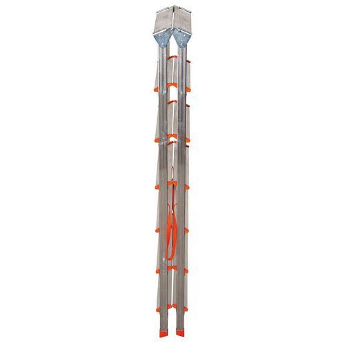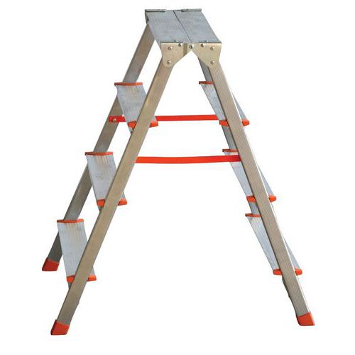 Doppia rampa in alluminio. 6 rivetti ogni gradino e 4 diagonali di rinforzo. Montanti 40x20 mm. Cinghie antidivaricamento Particolari in plastica arancione Realizzato in Italia