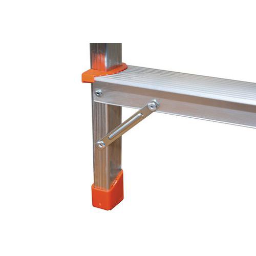 Doppia rampa in alluminio. 6 rivetti ogni gradino e 4 diagonali di rinforzo. Montanti 40x20 mm. Cinghie antidivaricamento Particolari in plastica arancione