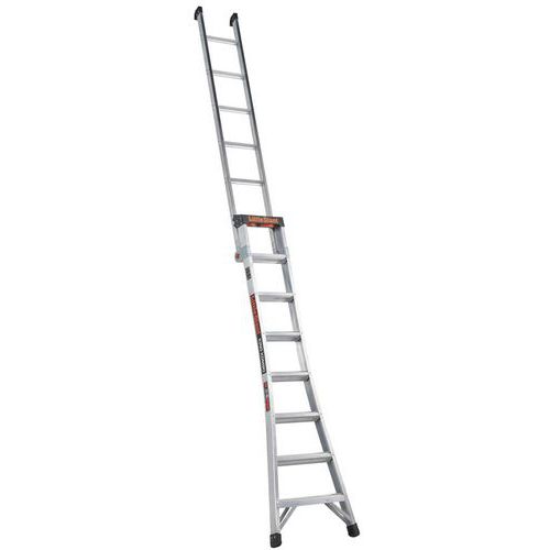 - Utilizzabile in modo tradizionale, può essere appoggiata su una superficie o può essere utilizzata come una scala.