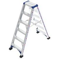 Scaletta a doppio accesso con profili larghi e robusti in alluminio dal design ergonomico. Accesso confortevole grazie ai gradini antiscivolo da 80 mm saldati su larghi profili in alluminio. Giunti nascosti per prevenire lo schiacciamento delle dita. Autostabile in posizione chiusa.