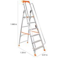 Scaletta professionale in alluminio. Ripiano portautensili multifunzione. Comoda e sicura grazie alla rampa. Profili rinforzati in alluminio. Sistema di bloccaggio della piattaforma. Gradini antiscivolo. Facile da trasportare e riporre.