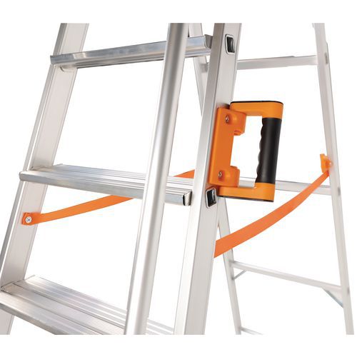 Scaletta professionale in alluminio. Ripiano portautensili multifunzione. Comoda e sicura grazie alla rampa. Profili rinforzati in alluminio. Sistema di bloccaggio della piattaforma. Gradini antiscivolo. Facile da trasportare e riporre. Garanzia Cliente : 10 anni Carico max. (kg) : 150 kg