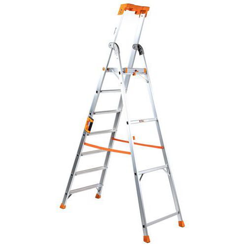 Scaletta professionale in alluminio, H d'accesso: 3.6 m, Piattaforma, H: 1.606 m Scaletta professionale in alluminio, H d'accesso: 3.6 m, Piattaforma, H: 1.606 m